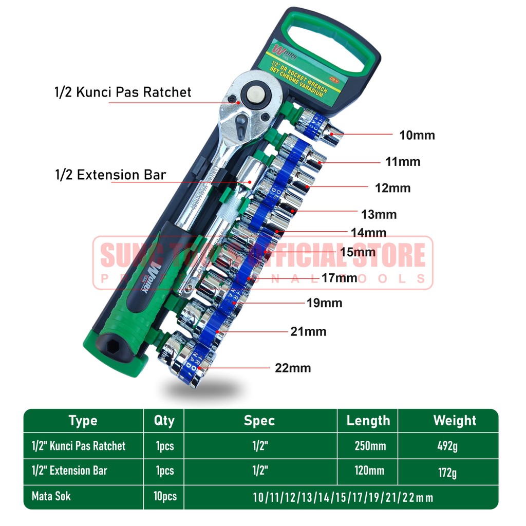 WOIRX TOOL Kunci Sock Set 1/2" inch 12pcs Kunci Sok Shock Socket Wrench