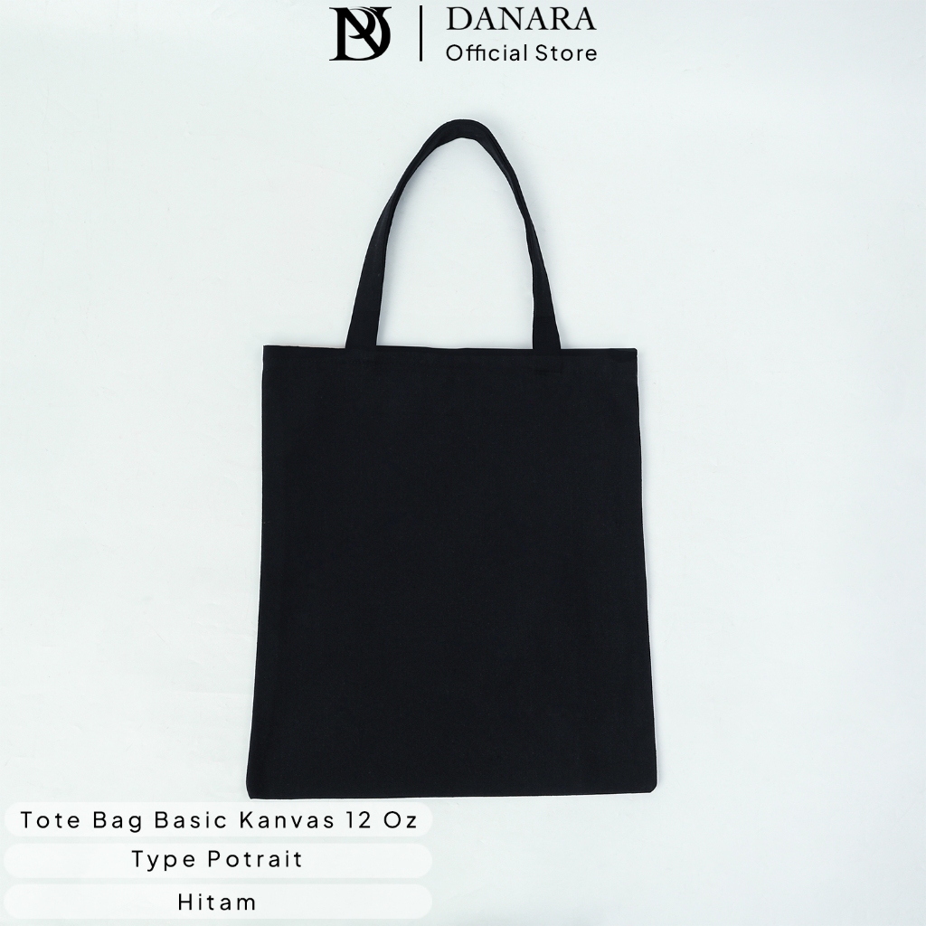 RA Tote Bag Basic Kanvas 12 Oz Polos Type Potrait - Hitam