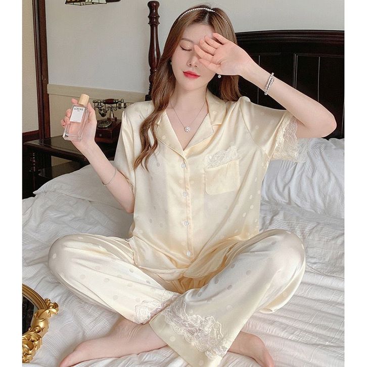 Baju Piyama Sutra Untuk Wanita/baju tidur paket hemat/Set Celana Panjang Lengan Pendek/baju dinas malam wanita kekinian