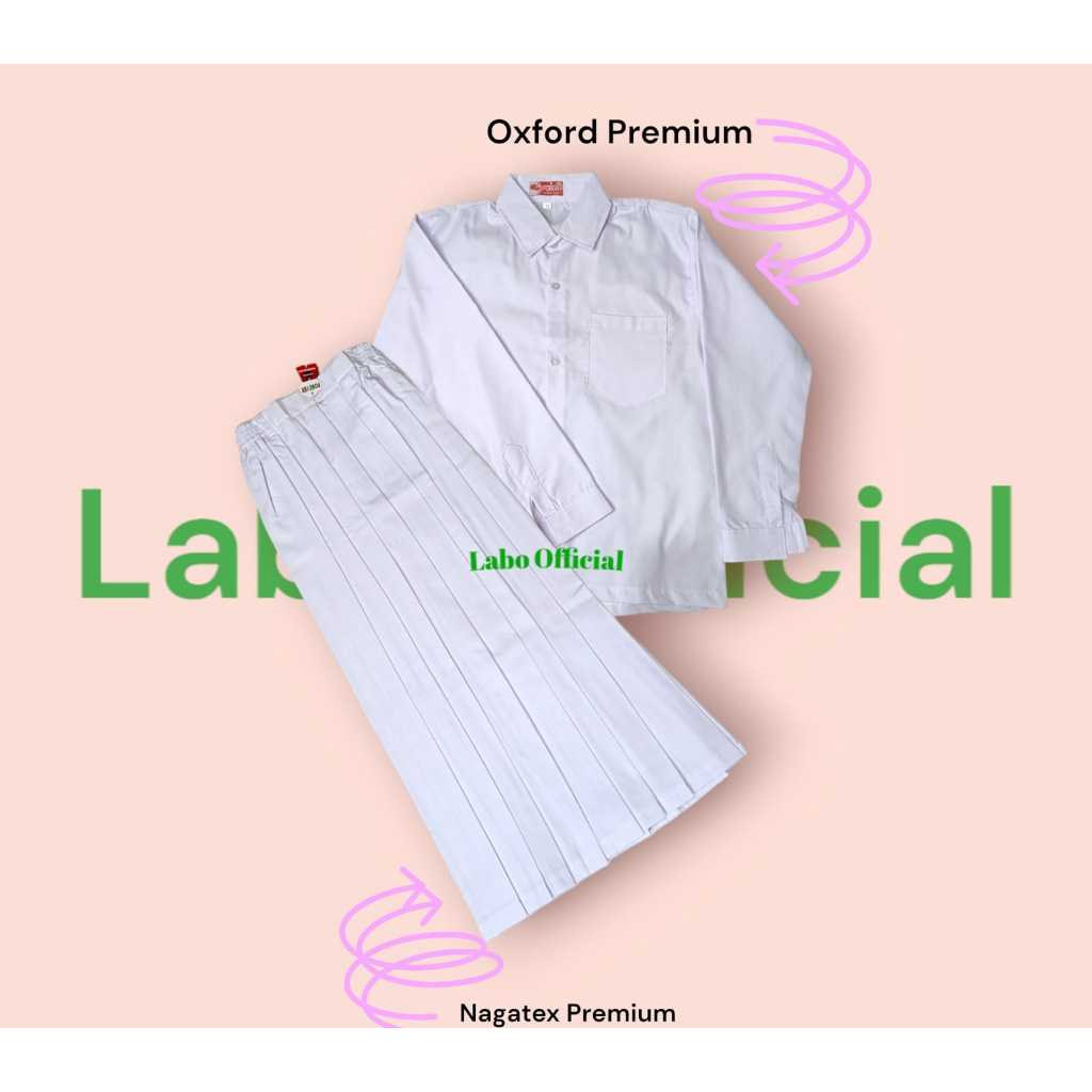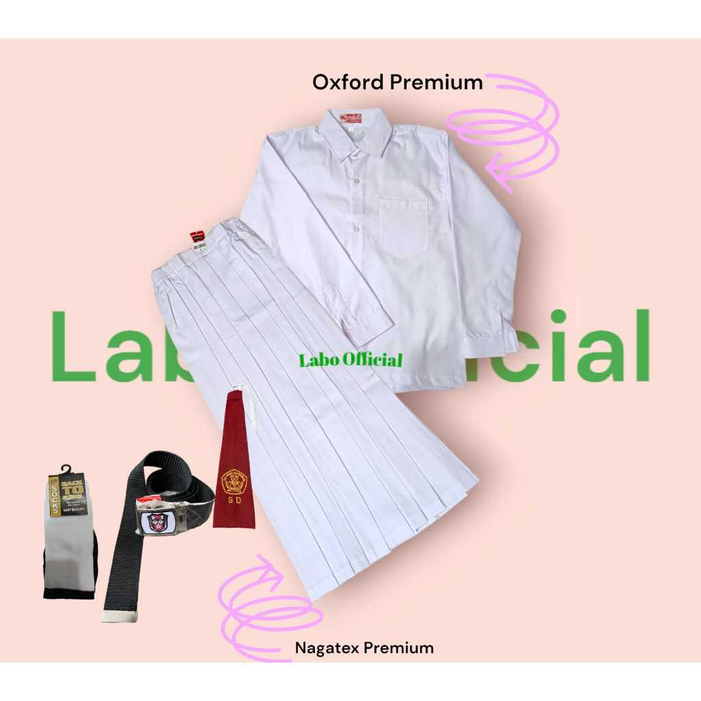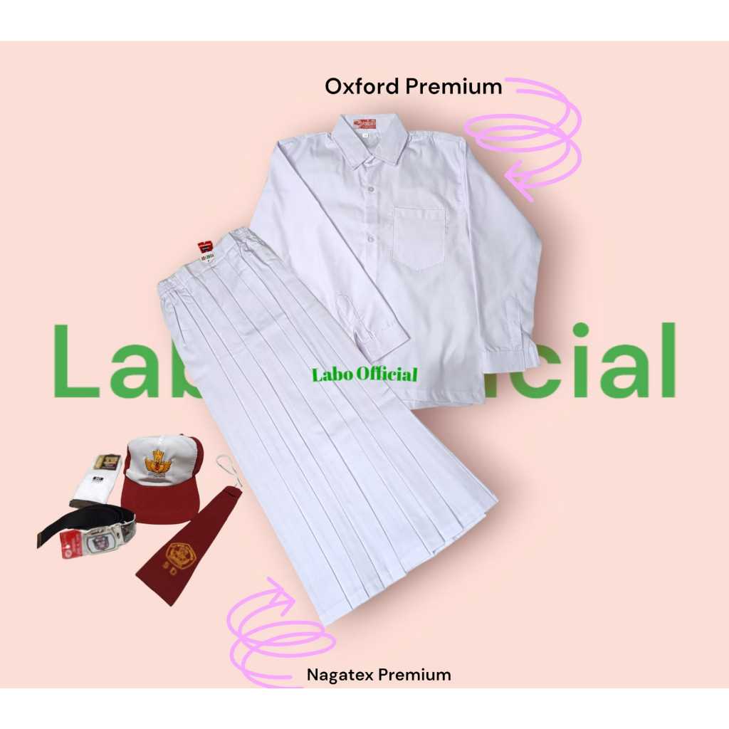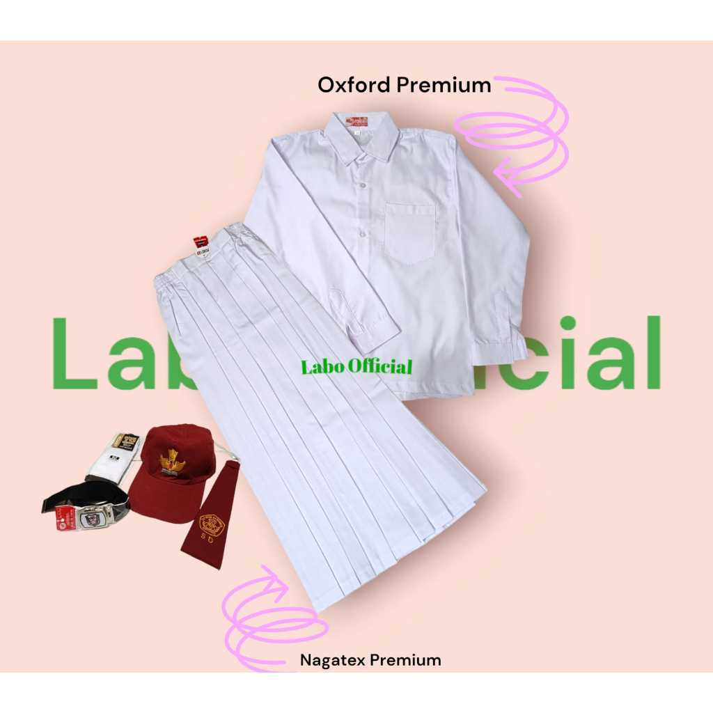 Setelan Seragam Sekolah SD/MI Lengan Panjang Putih Polos Rok Rampel Panjang Putih