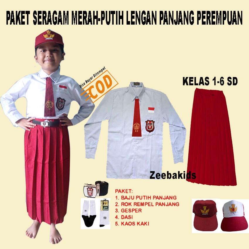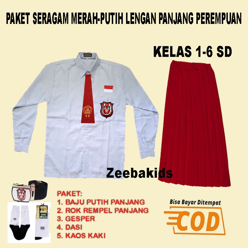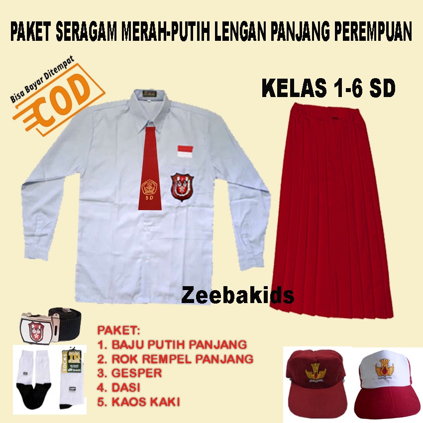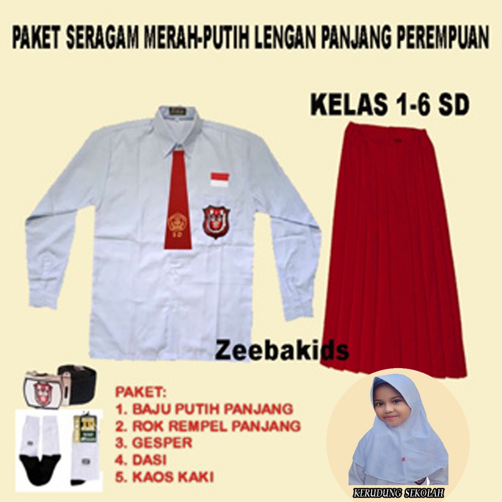 Setelan Seragam sekolah merah putih lengan panjang Perempuan kelas 1-6 SD