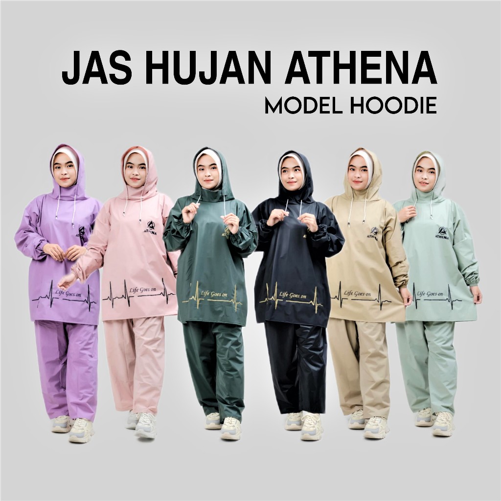 Jas Hujan Hoodie Pria Wanita Bahan Waterproof Kualitas Premium Tebal Anti