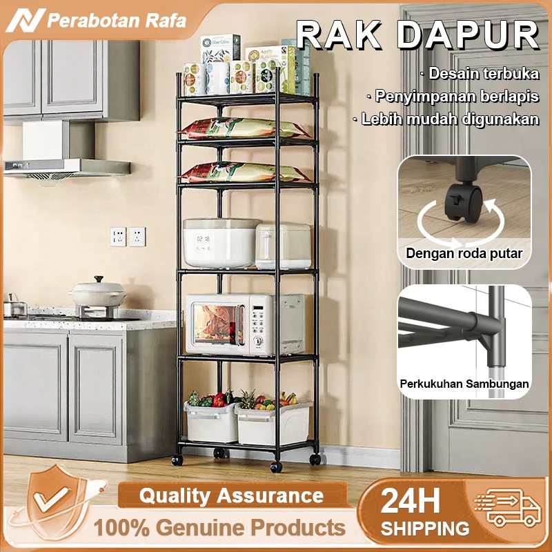 【Perabotan Rafa】Perabotan Rafa Rak Dapur Multifungsi Multi-Lapis Dengan Roda Opsional Penyimpanan Pot Dan Mangkuk Artefak Hemat Biaya susun Rak Kamar Mandi Beroda Serbaguna