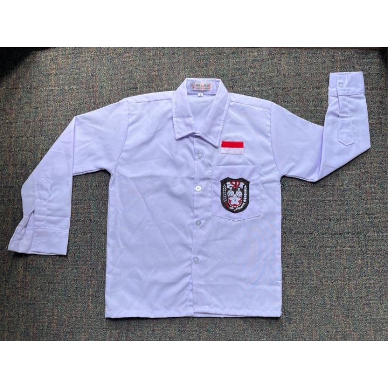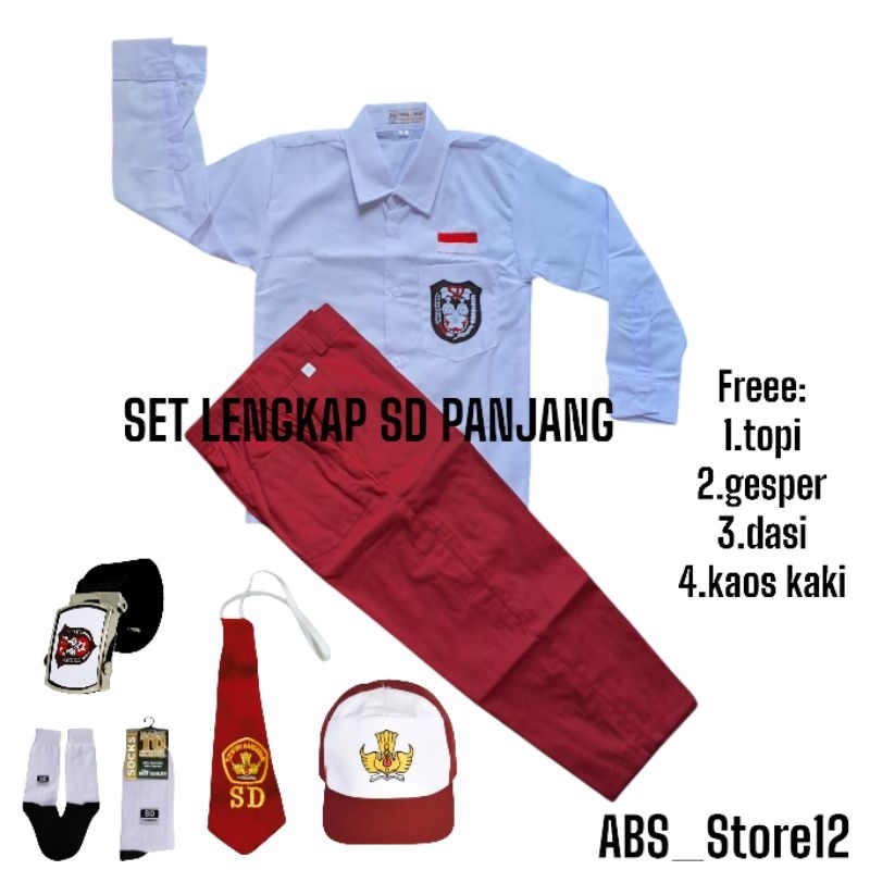 Setelan Super Lengkap Seragam Sekolah SD BAJU PUTIH PANJANG CELANA MERAH PANJANG COWOK