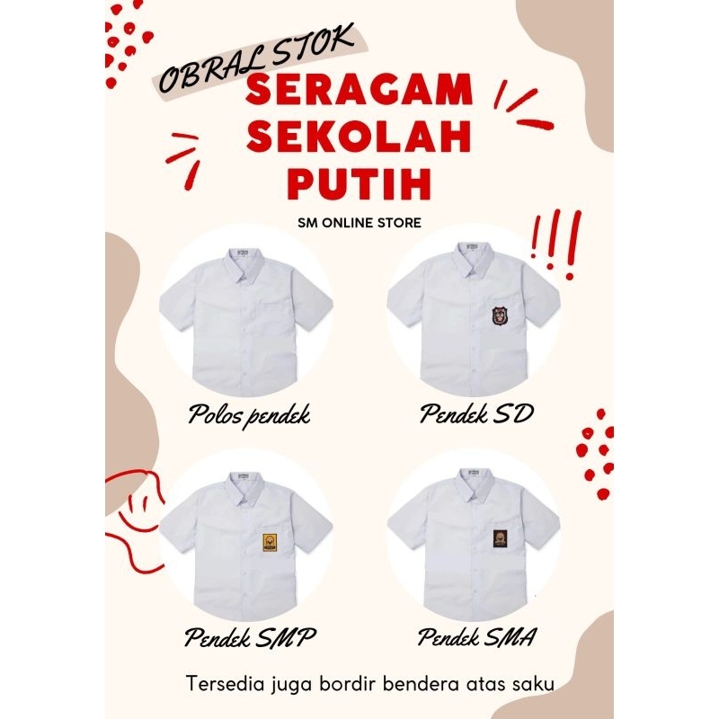 OBRAL SERAGAM SEKOLAH PUTIH DAN PRAMUKA SD SMP SMA KEMEJA LENGAN PENDEK PANJANG