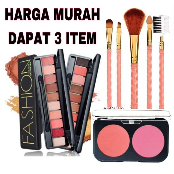 [Star]Paket Bundling Eyeshadow 10 Warna + Blush On 2 in 1 + Set Brush 5pcs – Make Up Lengkap Termurah