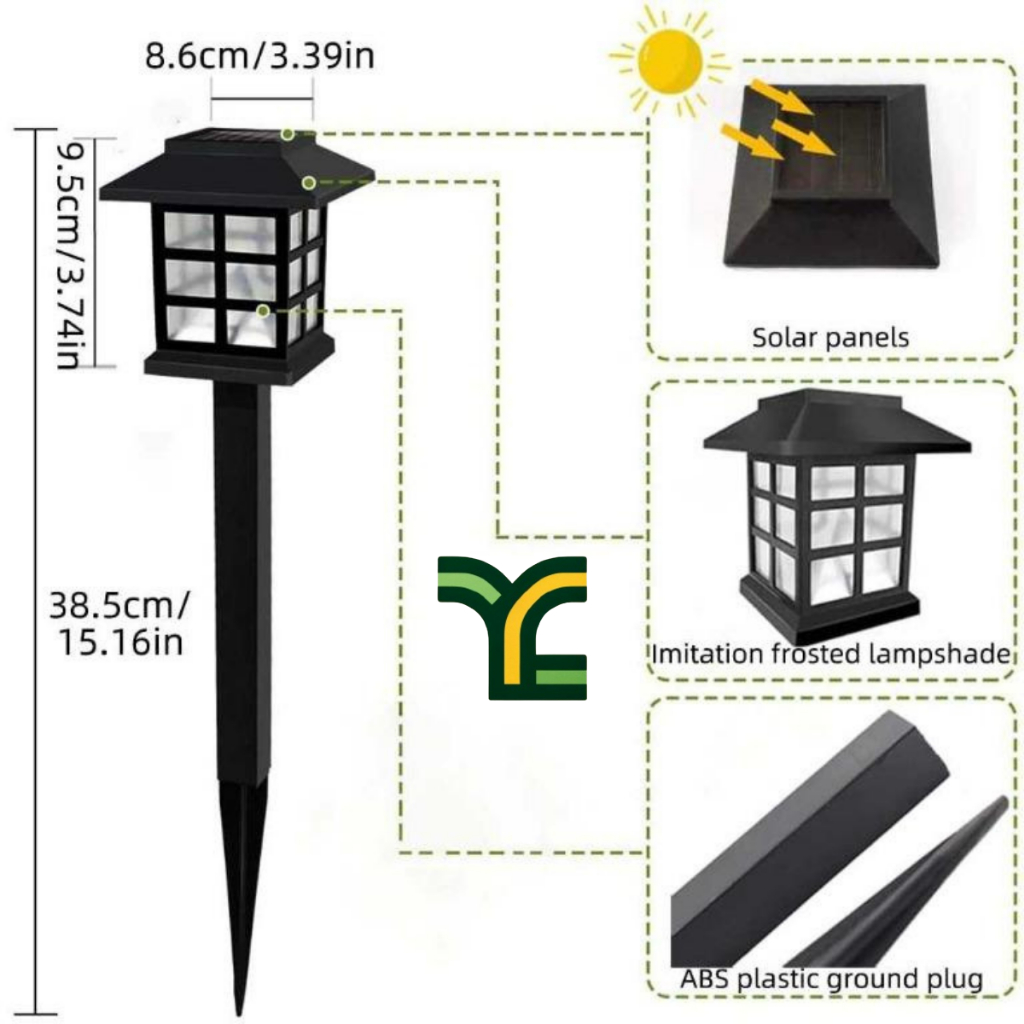 LAMPU HIAS TAMAN PAGAR MINIMALIS TENAGA SURYA SOLAR CELL TANCAP TANAH - HITAM