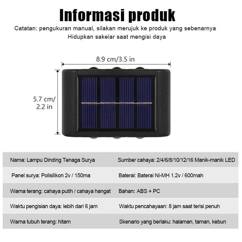 LAMPU HIAS DINDING TAMAN OUTDOOR/INDOOR TENAGA SURYA SENSOR LED SOLAR HALAMAN PENCAHAYAAN WATERPROOF