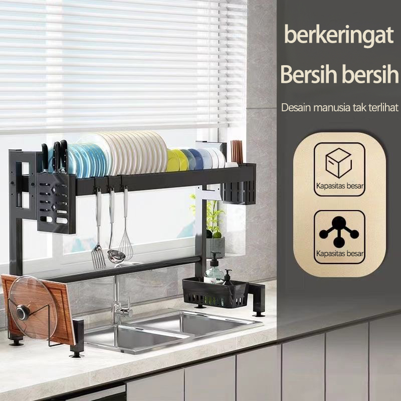 Rak Cuci Piring Wastafel Rak Dapur Anti Karat Stainless Steel Rak Piring Dengan Aksesoris