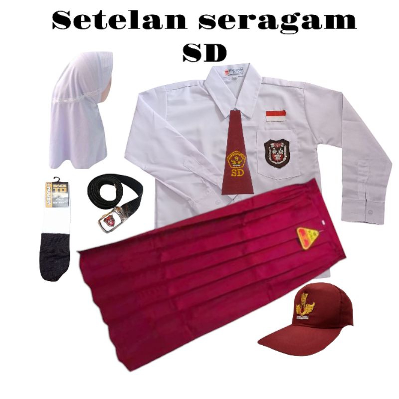 Setelan seragam sekolah SD merah putih anak perempuan kelas 1-6 SD Set baju panjang SD rok panjang merah