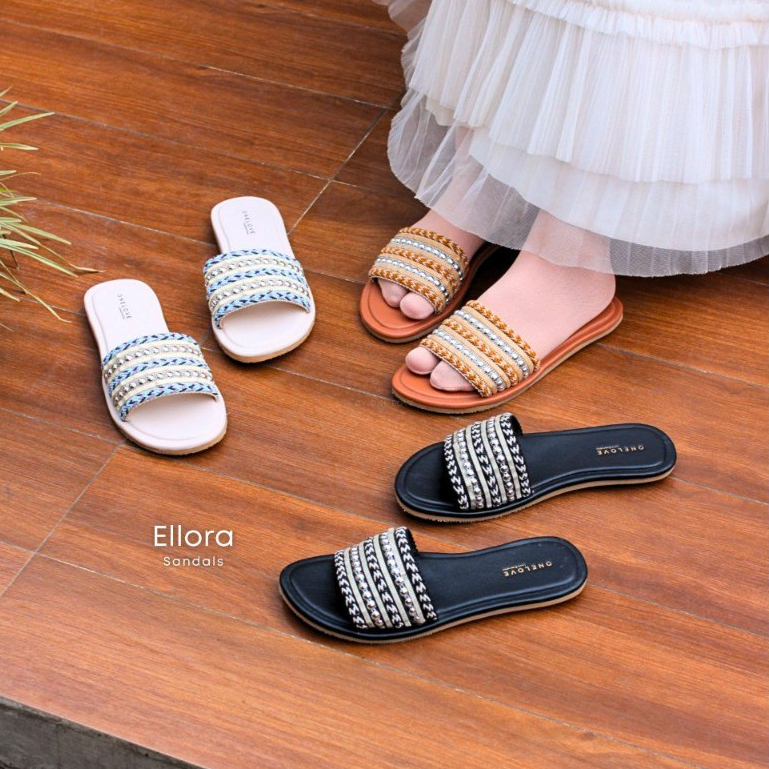 [DAPAT 2 PASANG] ONE LOVE ELLORA SANDAL - SANDAL FLAT WANITA
