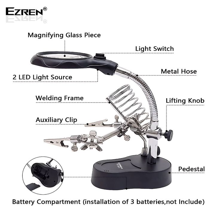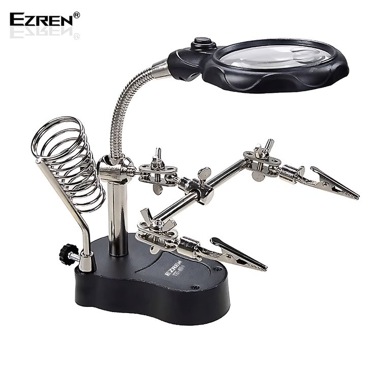 Ezren TE-801 Kaca Pembesar Penjepit PCB + Lampu Holder 3.5x 12x AAA