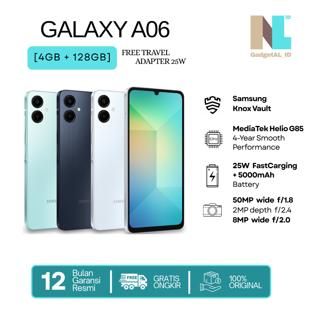 Samsung Galaxy A06 [4/64GB] [4/128GB] [6/128GB] | 5000mAh + Free Adapter 25Watt | Garansi Resmi