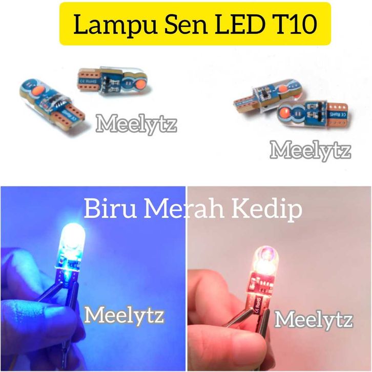 2PC Lampu sein - LED Sen Senja T10 Kedip biru merah 4 Mata LED