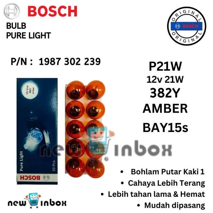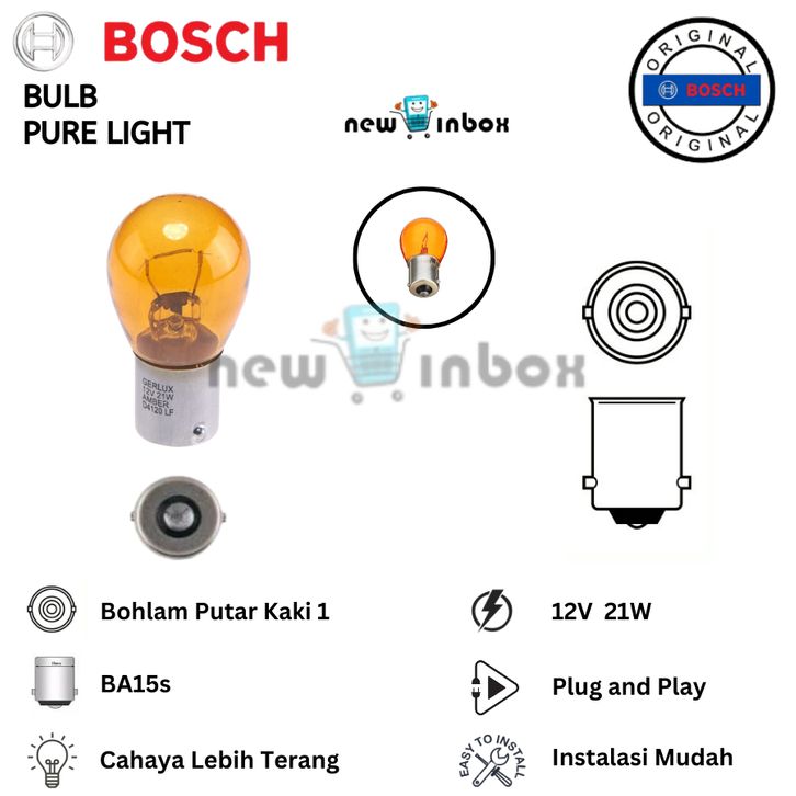 Bohlam Lampu Sein Sen Mobil Putar Kaki 1 Kuning BOSCH P21W 12V 21W AMBER BA15s 12 Volt Original