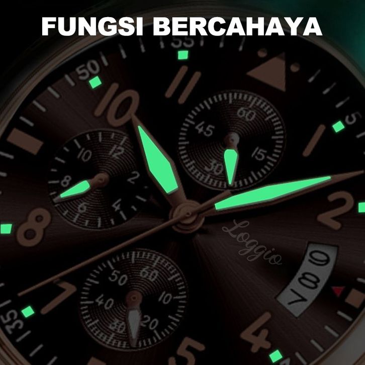 Loggio Jam Tangan Pria Lampu Malam Anti Air Kuarsa Tali Kulit Jam Tangan Cowok