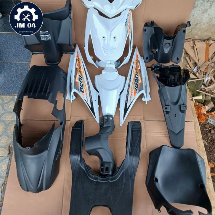 TERLARIS Cover full set body halus kasar motor honda beat karbu 2010-2012 plus striping warna putih