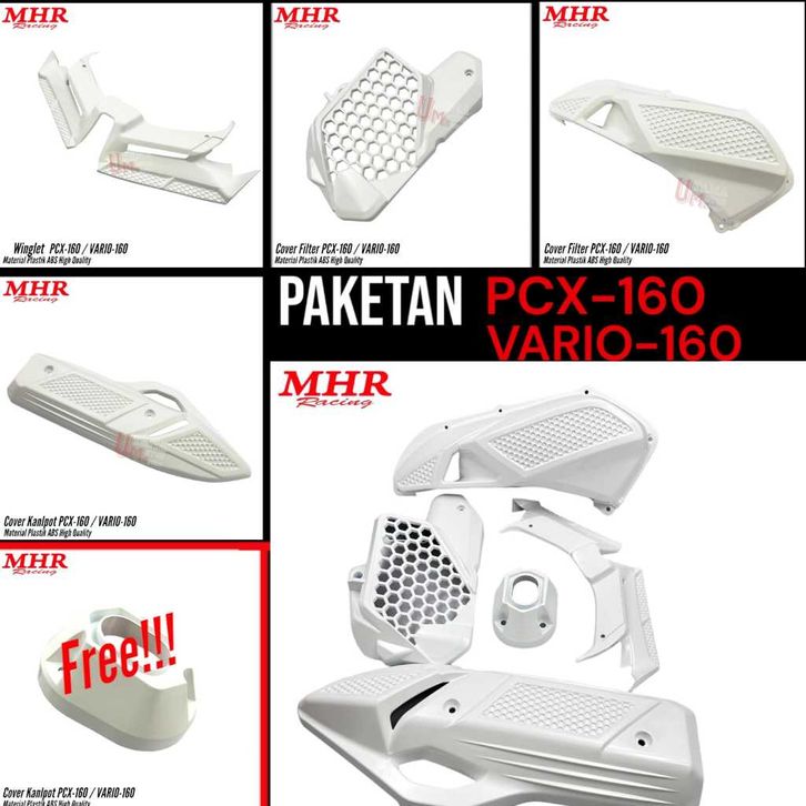 TERLARIS Paketan Cover Body Putih Vario-160 / Pcx-160 Knalpot,Filter,Radiator,Winglet,Free Corong MHR Racing