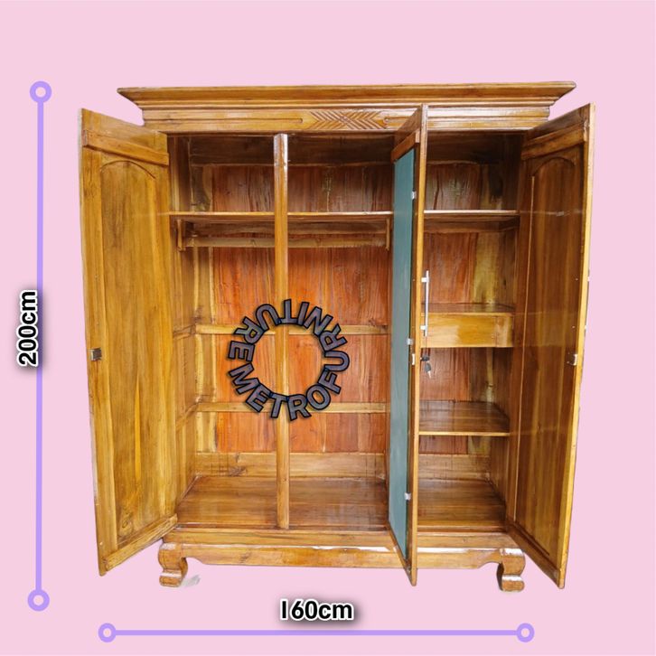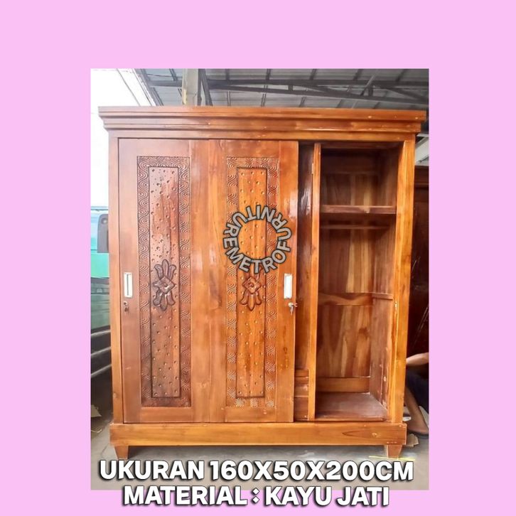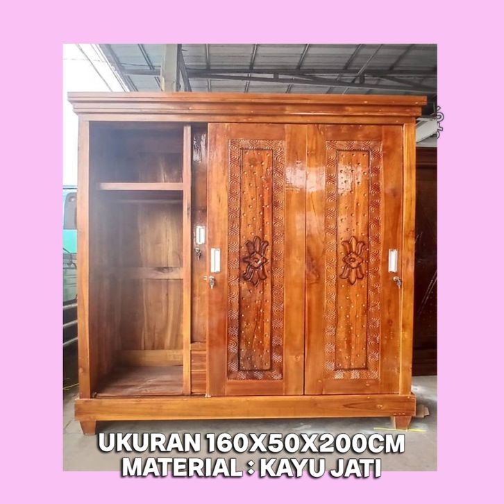 LEMARI PAKAIAN SLIDING JATI 3 PINTU KACA PANJANG LEMARI PAKAIAN JUMBO SLEDING JATI