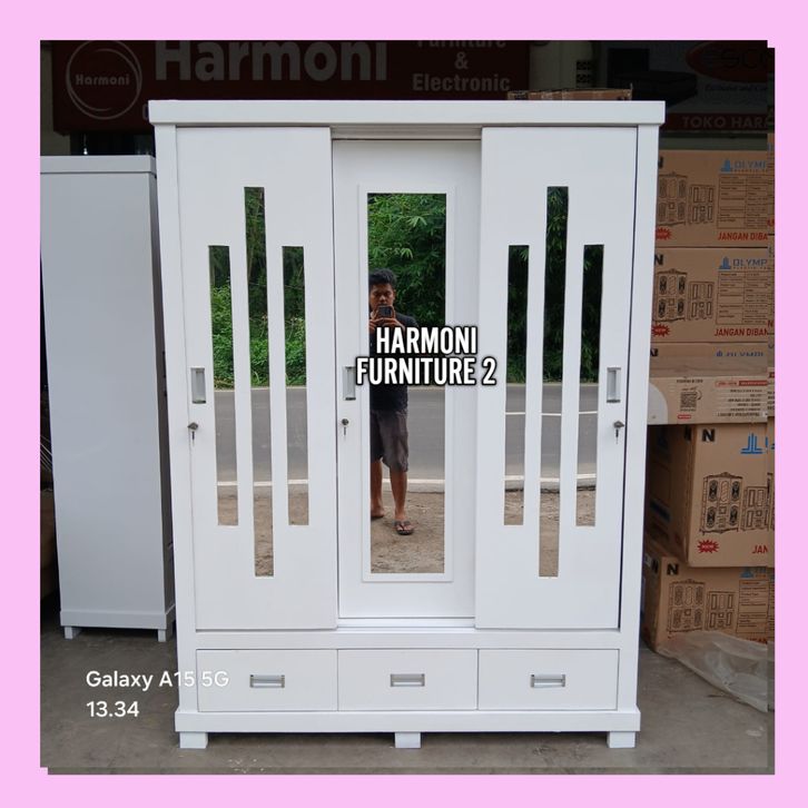 LEMARI PAKAIAN SLIDING 3 PINTU LEMARI PAKAIAN SLEDING MARMER MARBLE 3 PINTU
