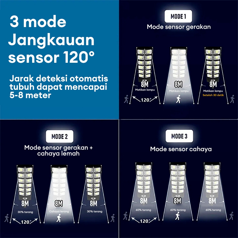 LAMPU TENAGA SURYA LAMPU JALAN LED 2000W TENAGA MATAHARI IP67 TAHAN AIR LUAR RUANGAN LISTRIK LAMPU JALAN SENSOR SMART SENSOR TAHAN PANAS DAN TAHAN DINGIN KENDALI JARAK JAUH