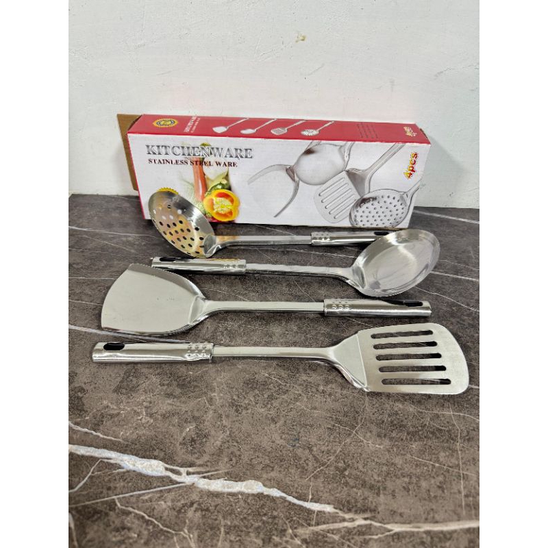 Spatula Set Stainless Steel Isi 4 Pcs Kitchen Tools Peralatan Masak Spatula Irus Sodet Sutil Saringan Anti Karat 4 in 1 Stenlis