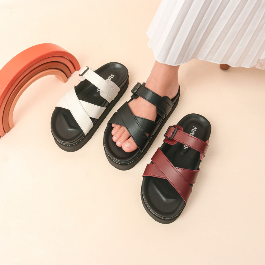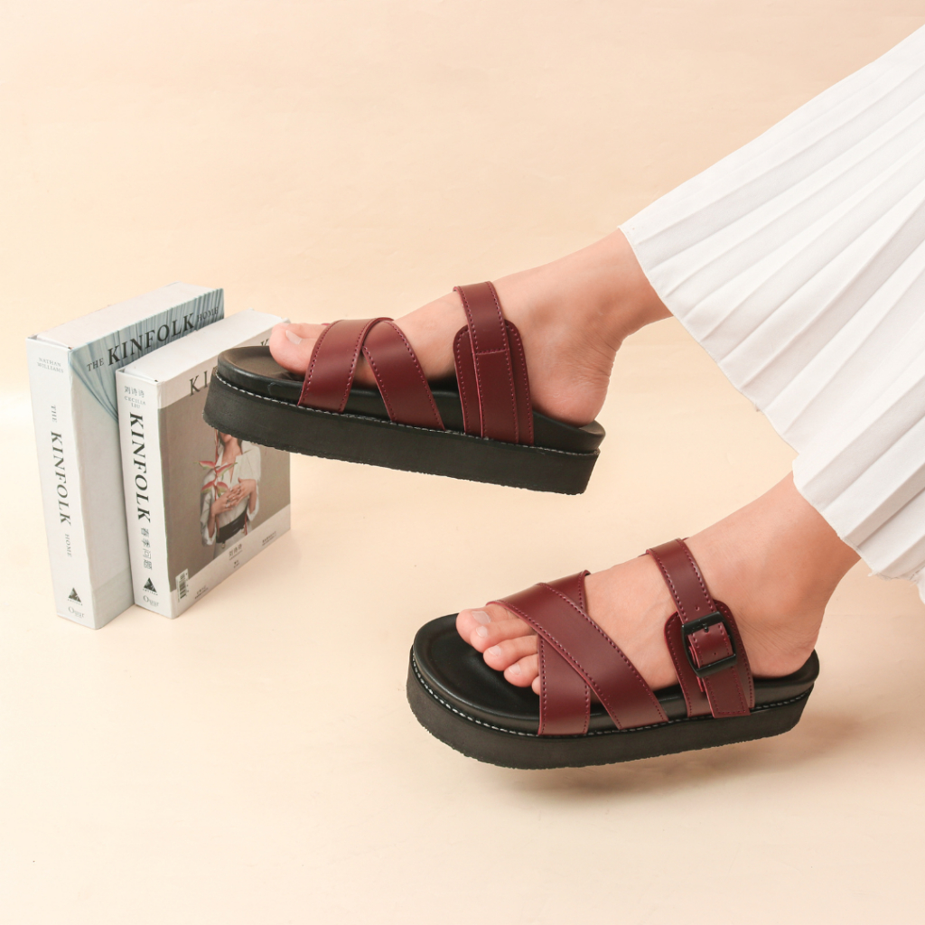 MINIMIMO Sandal Wanita Criss-Cross Nyaman & Anti Selip | Stylish dan Empuk Seharian - Aruna Maroon