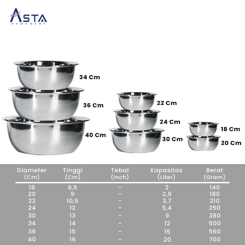 Asta Baskom Stainless Set Serbaguna | Mixing Bowl Mangkuk Stenlis Tebal Jumbo Mangkok Adonan