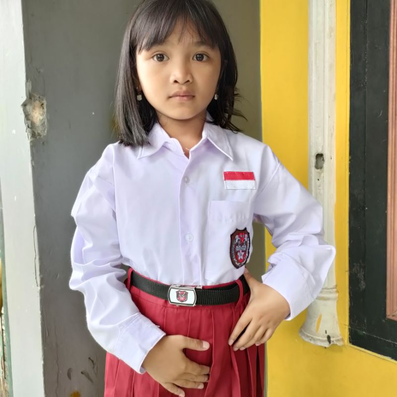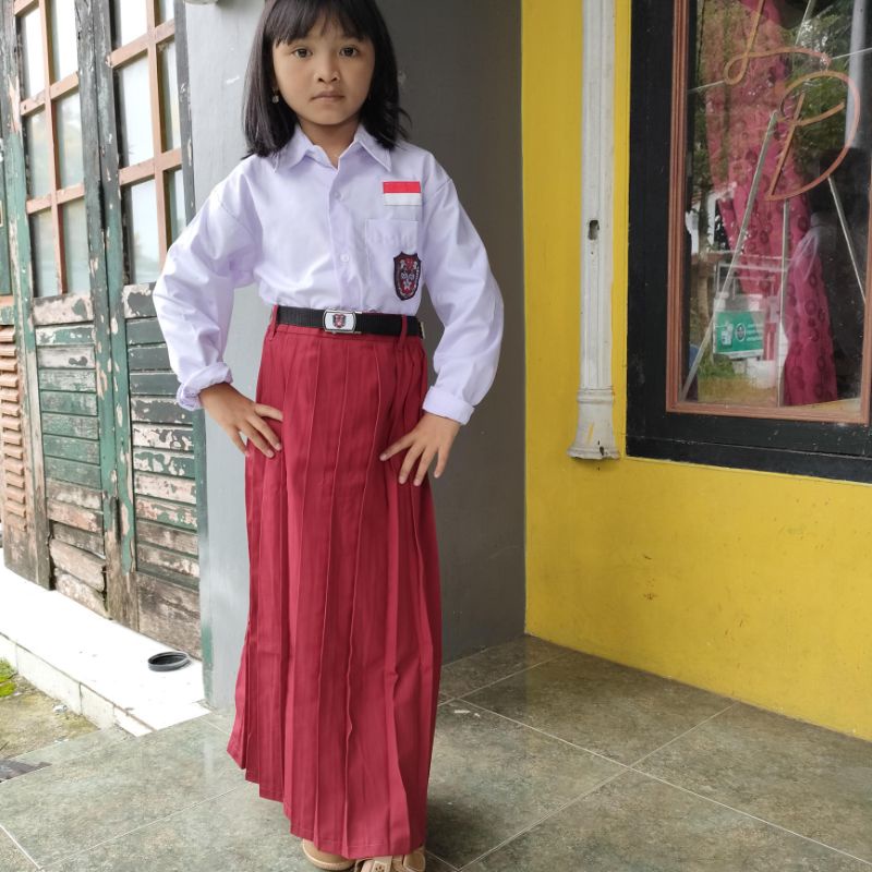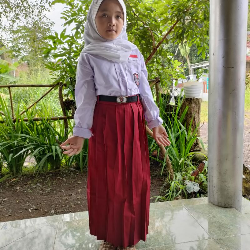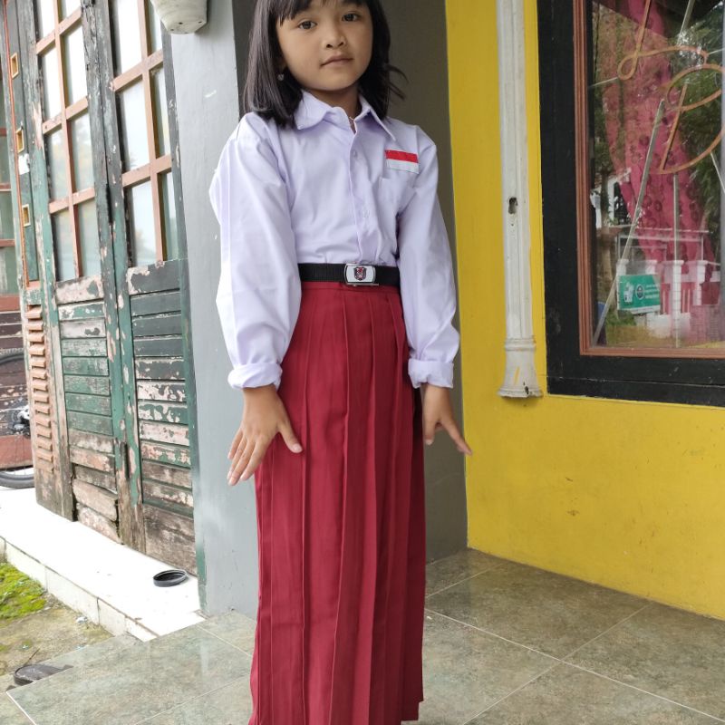 Setelan seragam sekolah SD merah putih perempuan Merk elde