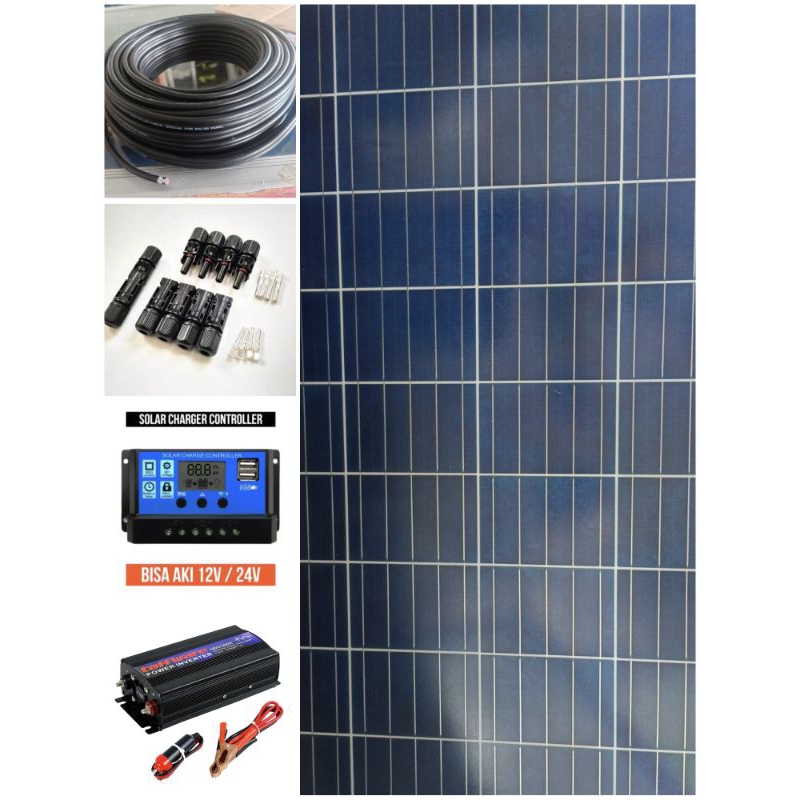 PANEL SURYA SET 100 WP INVENTER 1000 WATT PSW ORIGINAL DC TO AC PLUS KAYU