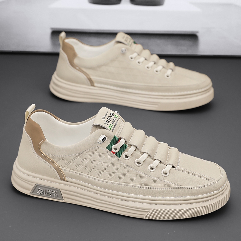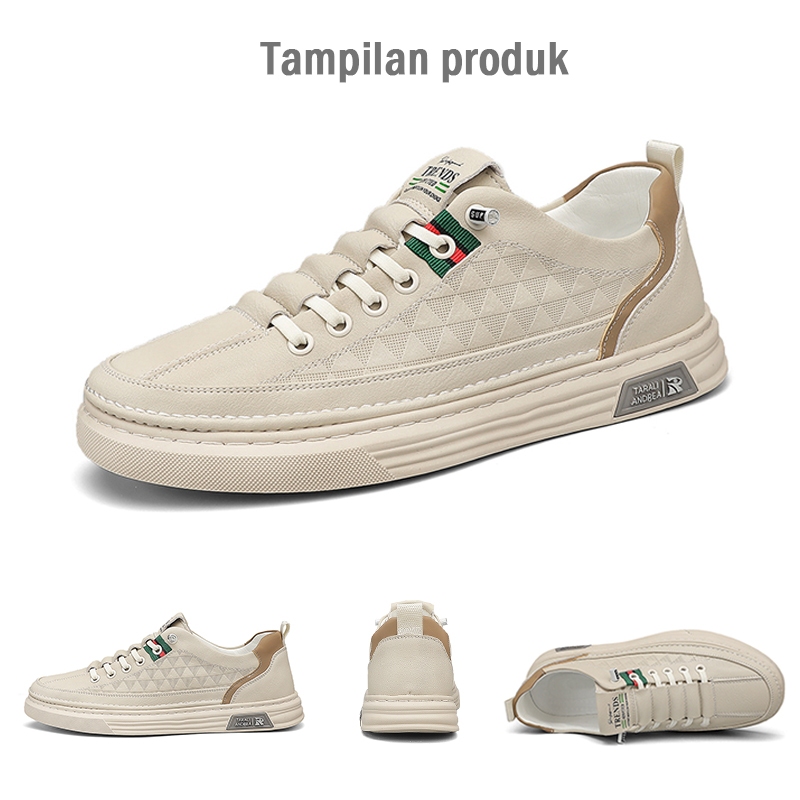 Sneakers Pria Impor Putih Krim - Sepatu Fashion & Olahraga | Nyaman + Free Ongkir