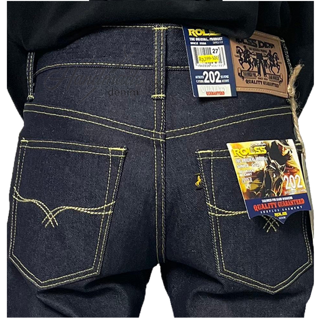 ROLSS DENIM - celana selvedge accent pria denim original redline 15 oz black indigo sanforized