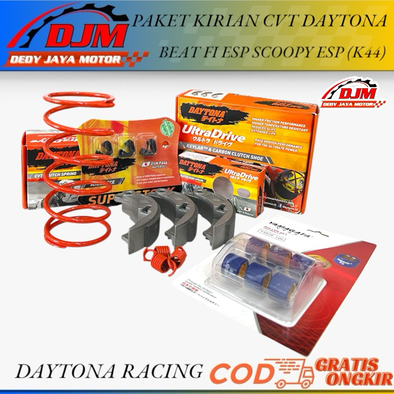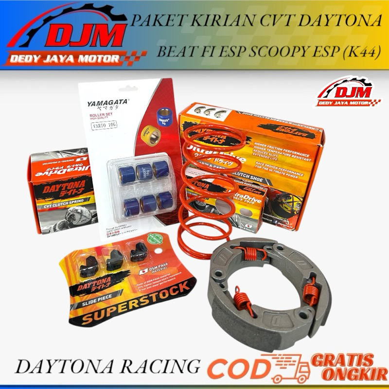 Paket Kirian CVT Anti Gredek Beat Esp Scoopy Fi esp (K44) Kampas Ganda Daytona Per Cvt Daytona 1500Rpm Per Sentrik Daytona 1500Rpm Slider Daytona Roller Yamagata 10Gram Harga Sepaket