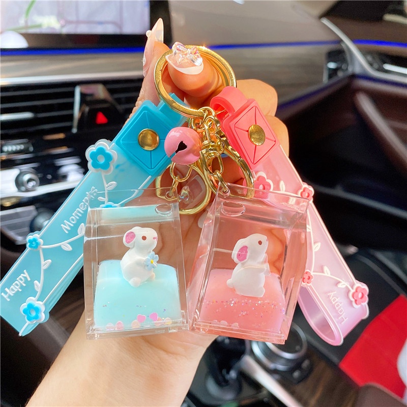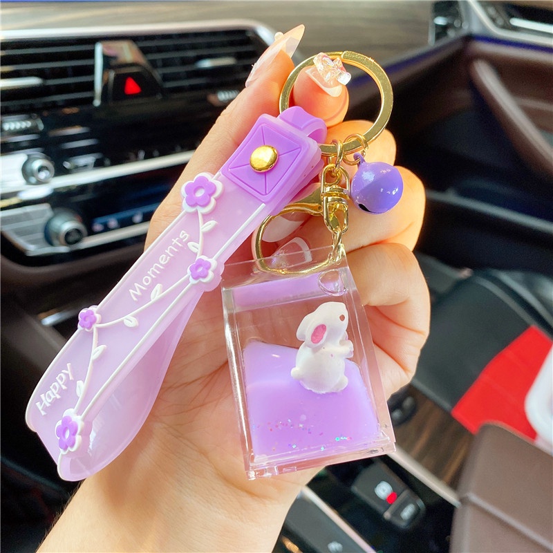 gantungan kunci lucu unicorn/kelinci/StellaLou/gantungan kunci mobil motor kunci rumah Gantungan kunci glitter cair kunc