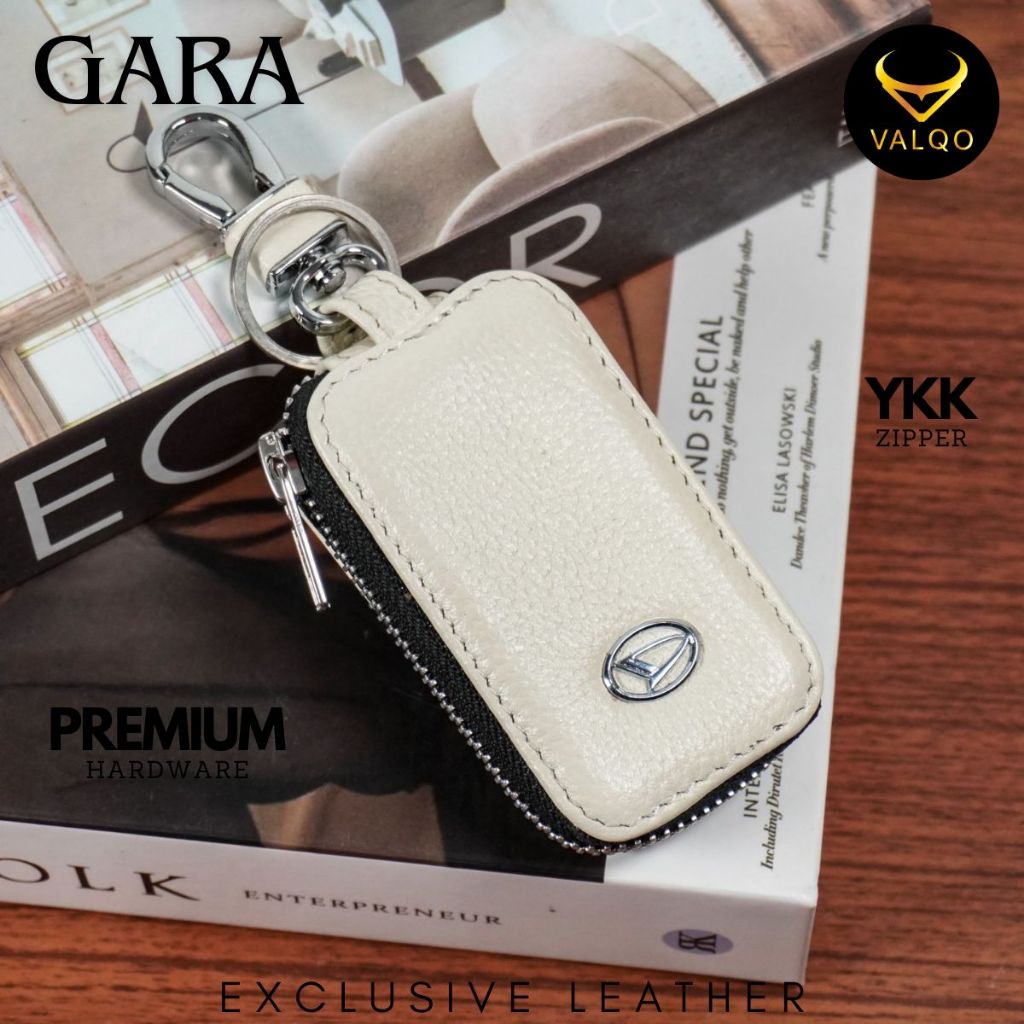 VALQO GARA Gantungan kunci Keyless Kulit Sapi untuk tempat Remot & Dompet STNK Mobil Motor Putih