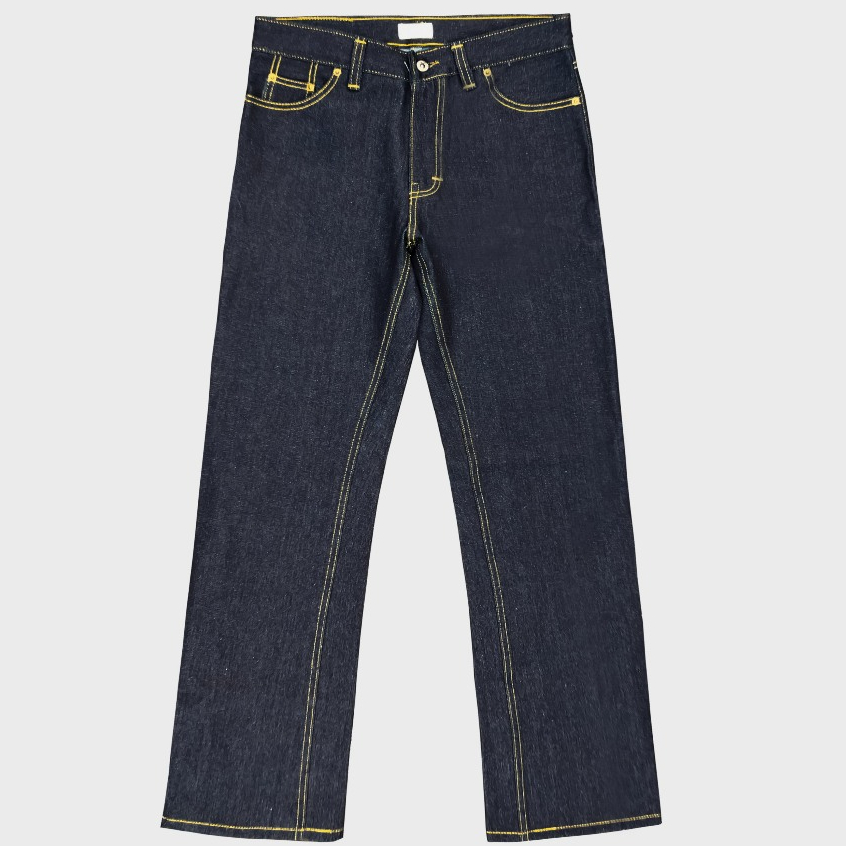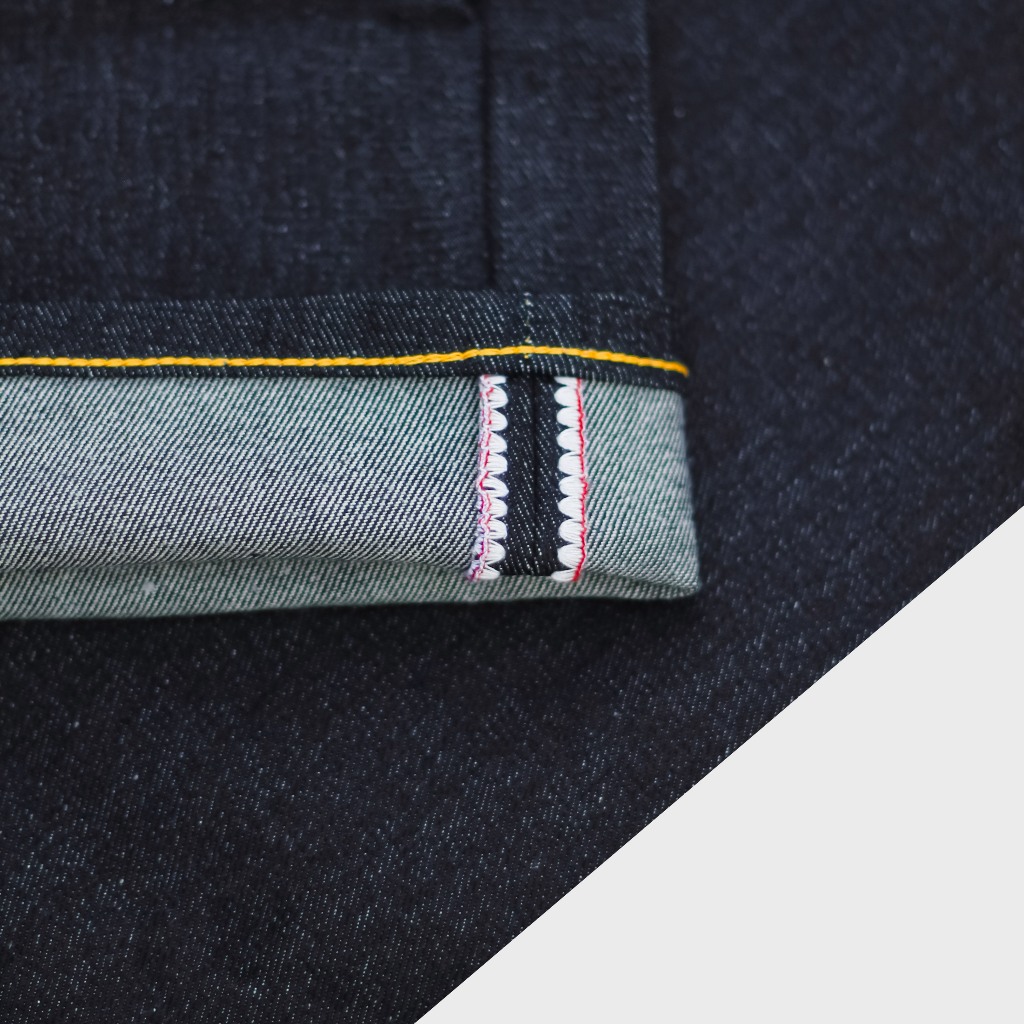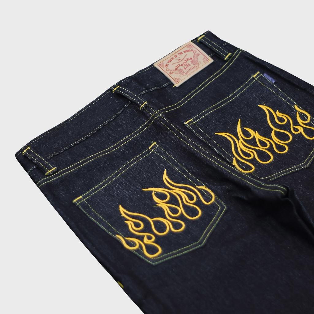 Raw Denim Selvedge Shellstich 16 Oz Non Strech Black Indigo Flame Art
