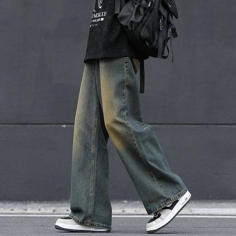 Thirteen Celana Skena Jeans Pria Retro Wide Leg Wisker Lebar Gombrong Skena Biru Rero Black Wisker pria loose fit jumbo big keren Bahan Denim