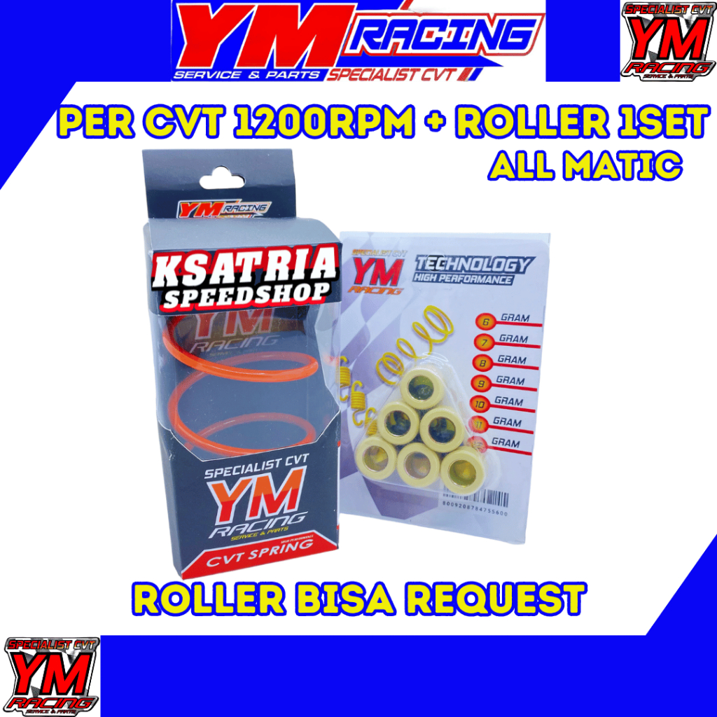 PER CVT 1200RPM + ROLLER 1SET ISI 6PCS/BUTIR YM RACING ALL MATIC (Beat/Mio/Vario/Scoopy/Genio/Nmax/Aerox/Lexi/PCX/Xride/Fino/Xeon/Spacy/Fazzio/Filano)