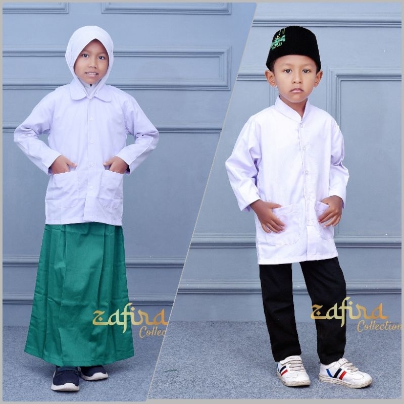 Seragam sekolah madrasah sd mi kemeja putih lengan panjang polos baju anak laki laki dan perempuan