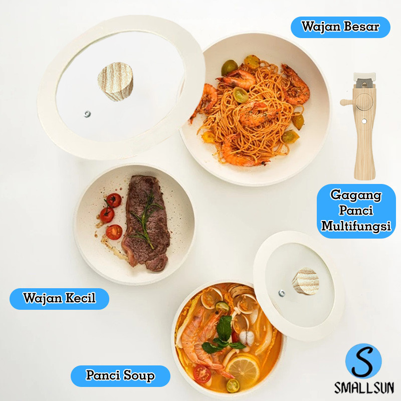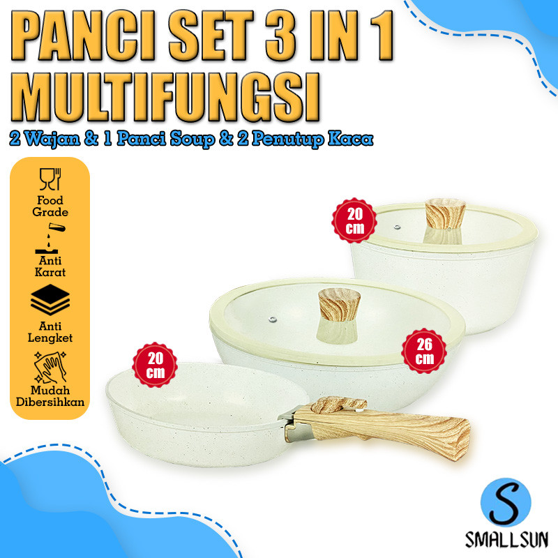 [SS] Panci Set 3 in 1 Wajan Penggorengan Sup Pegangan Dapat Dilepas Pasang Peralatan Masak Anti Lengket