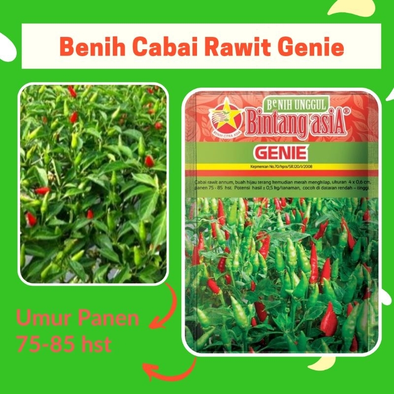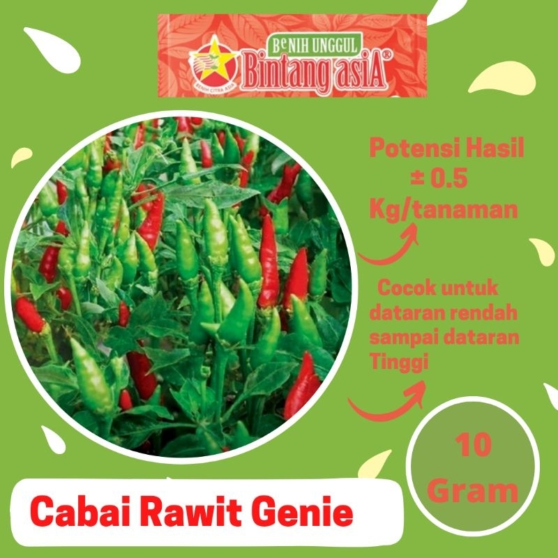 Benih Cabai Cabe Rawit GENIE 10 Gram Cap Bintang Asia PT Benih Citra Asia Warna Merah Mengkilap Cocok Di Dataran Rendah