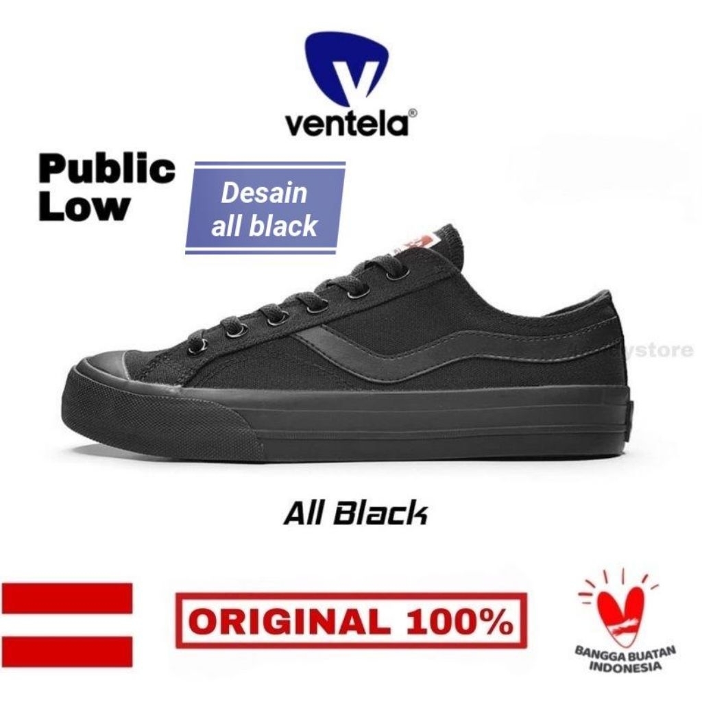Sepatu Ventela All Black Low Natural Original Pria Wanita