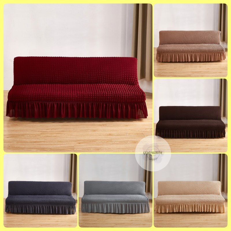 GHD ELASTIC SOFA BED COVER WITH SKIRT / PENUTUP SARUNG ALAS SOFABED ELASTIS TEBAL POLOS RENDA