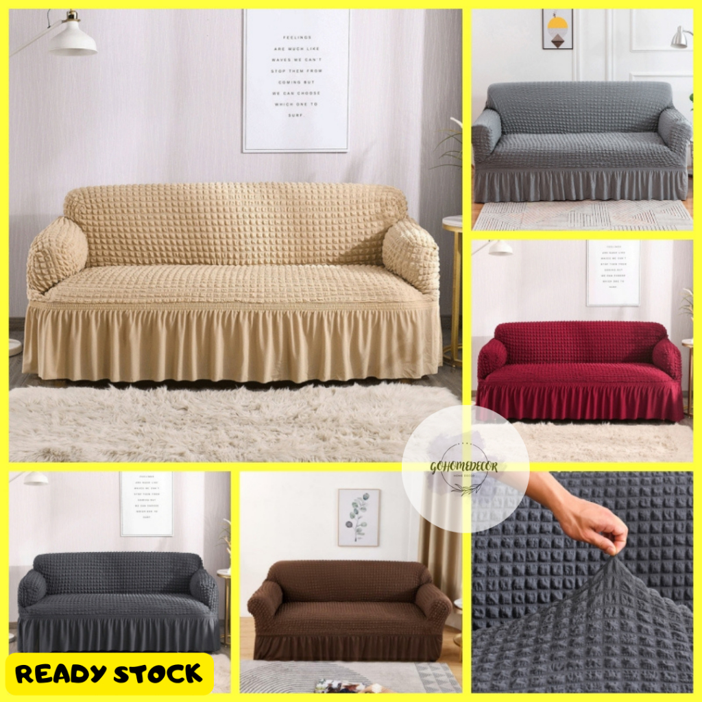 GHD ELASTIC SOFA COVER SKIRT / SARUNG TUTUP SOFA RENDA ELASTIS MOTIF STRECTH MURAH POLOS BERWARNA