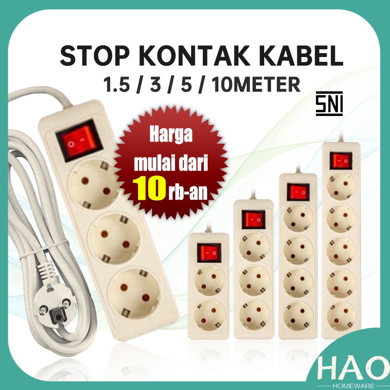 STOP KONTAK + KABEL 2/3/4/5 LUBANG 1.5/3/5/10 M SNI Barang Lokal