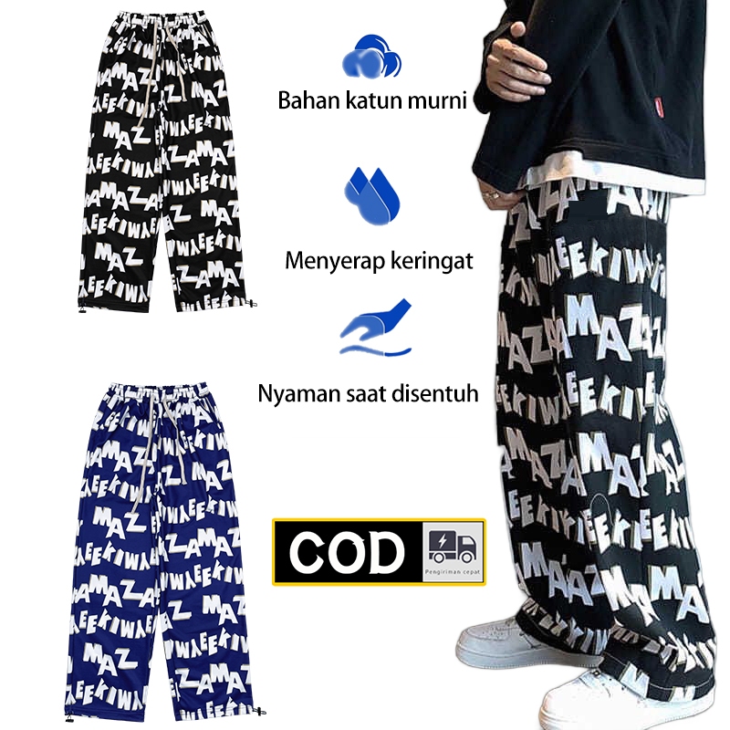 celana pria training pinggang karet oversize manset kulot korea unisex celana running pria celana panjang pria.