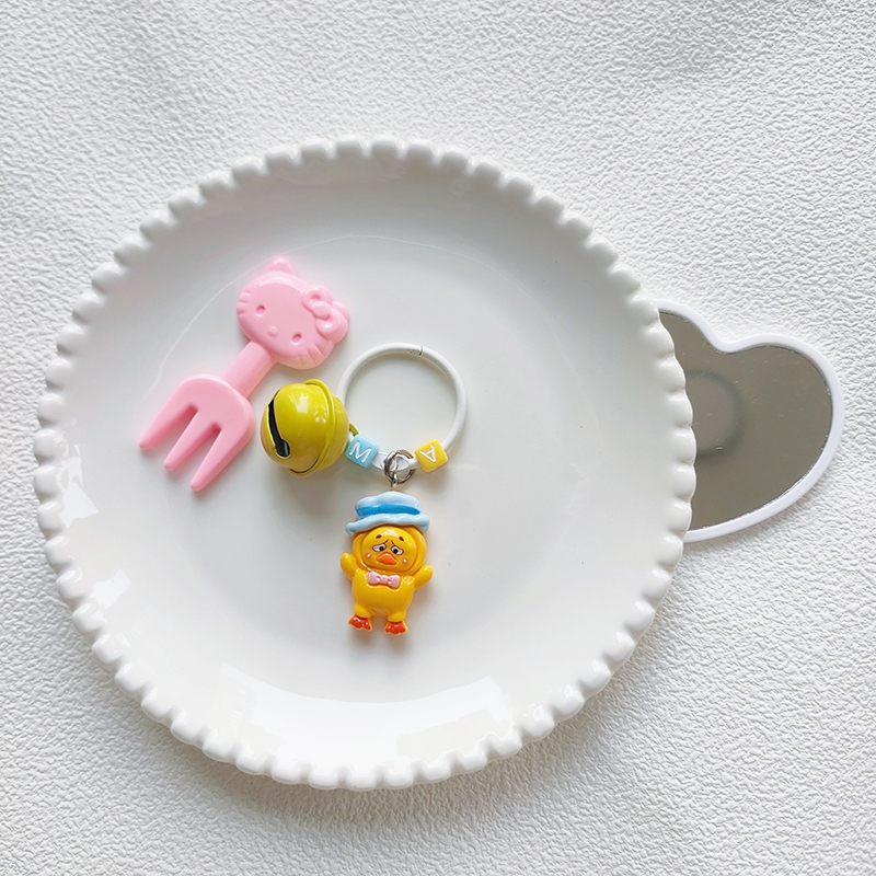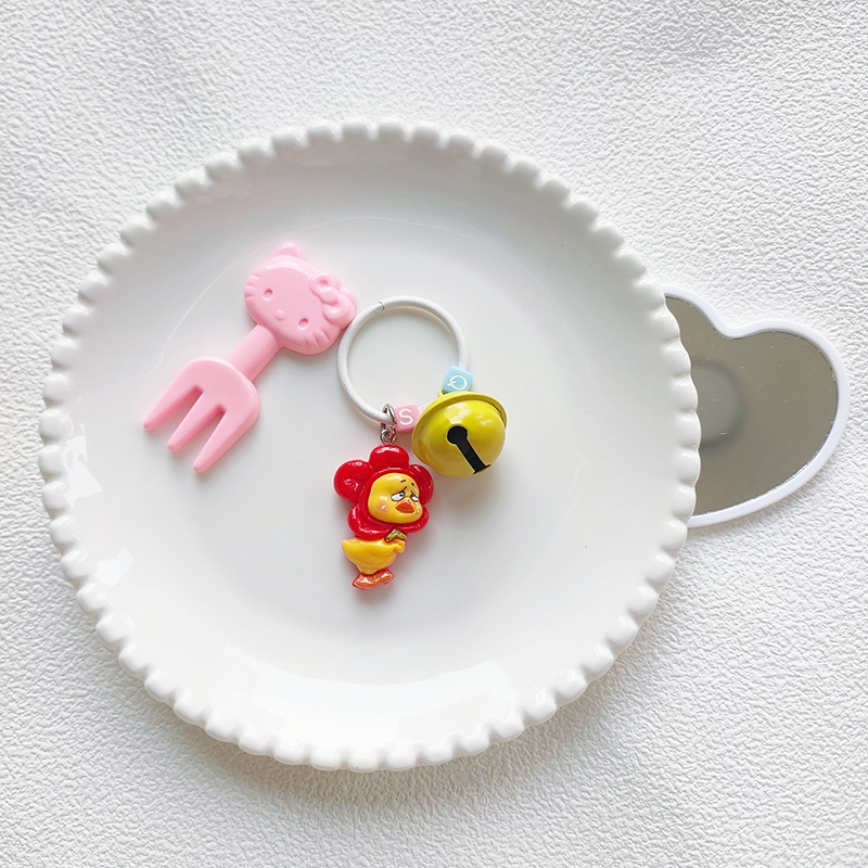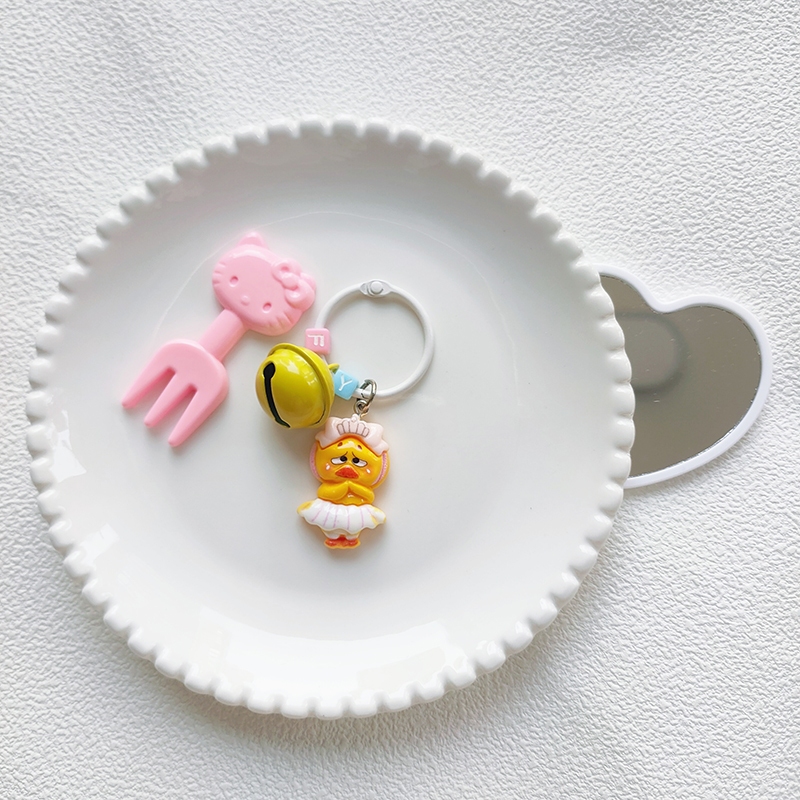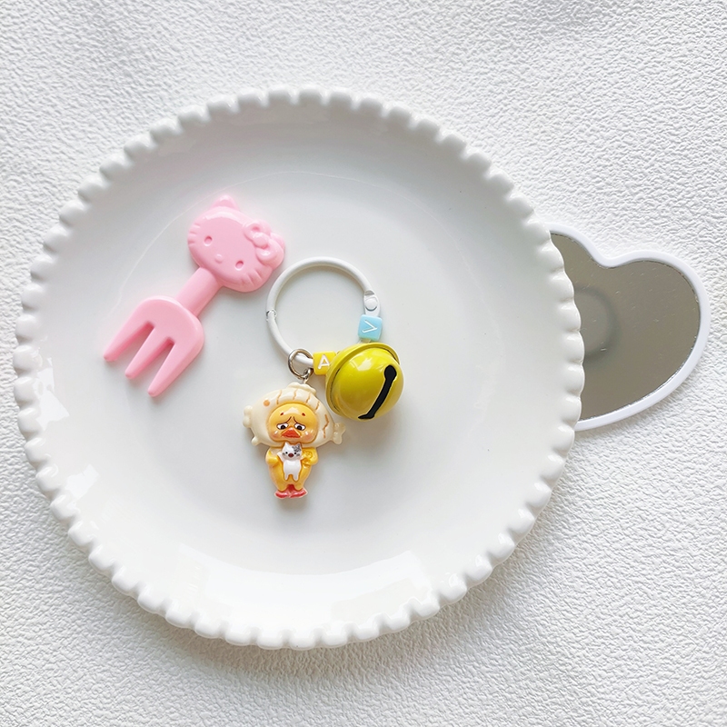 Gantungan Kunci Bebek Kuning Cemberut Sedih Resin Boneka Berlonceng Gantungan Kartun Rantai HP Lucu