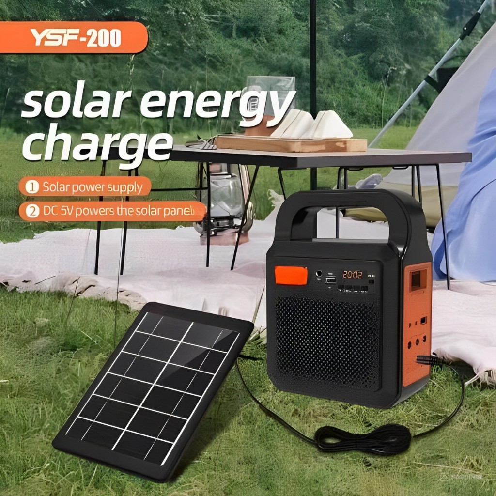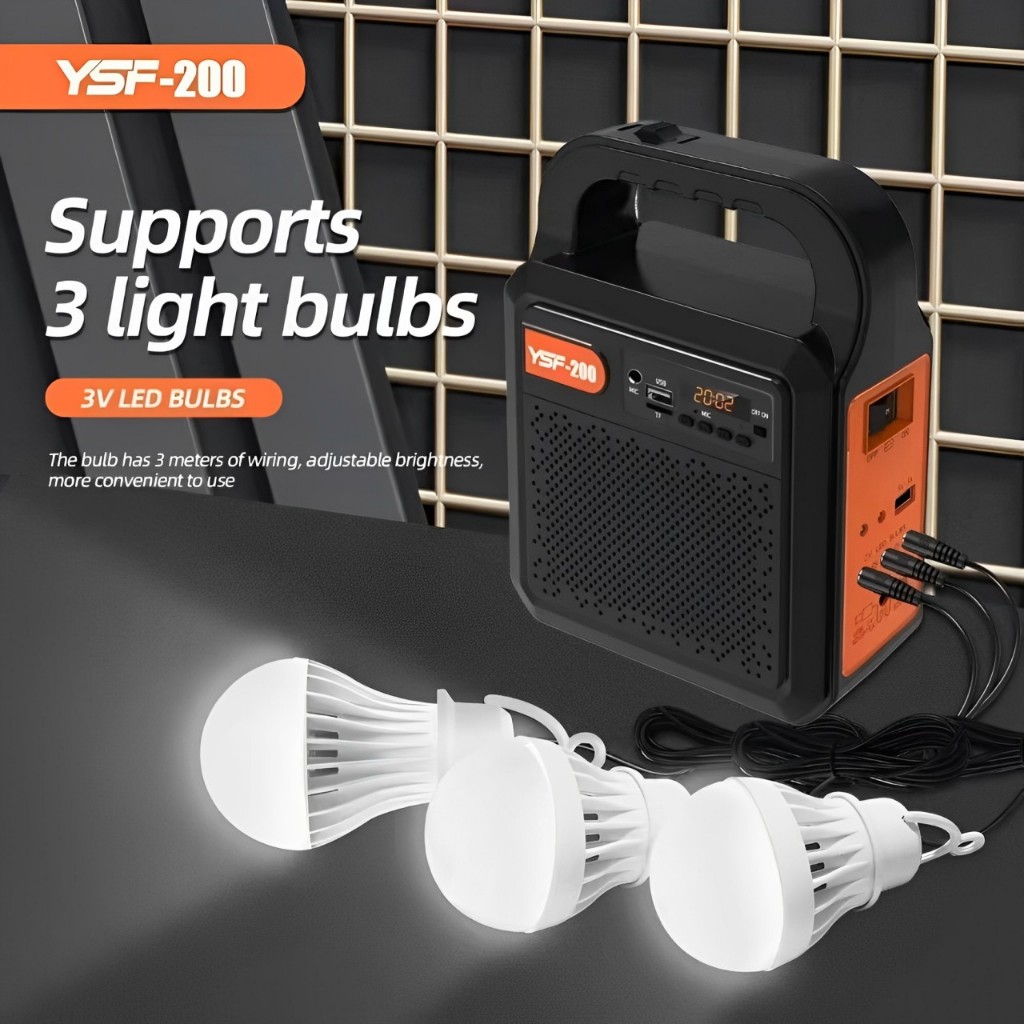 SOLAR LIGHT LAMPU PANEL SURYA + SPEAKER BLUETOOTH RADIO FULL BASS YSF-200 GRATIS 3 BOHLAM LED | SOLAR LIGHTING SYSTEM LAMPU EMERGENCHY TENAGA MATAHARI FOR OUTDOOR CAMPING - POWERBANK 6000MAH