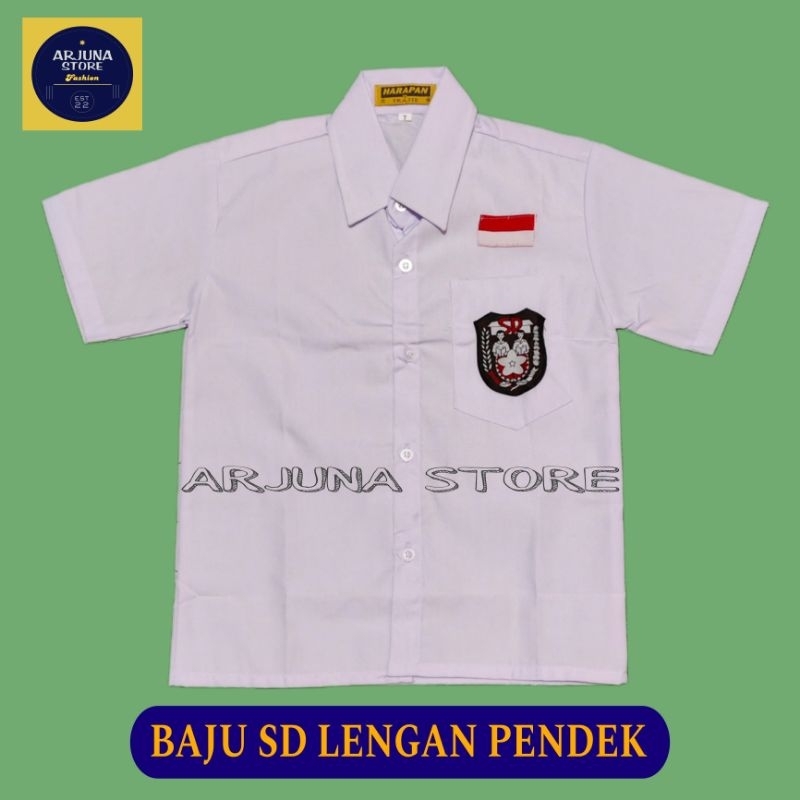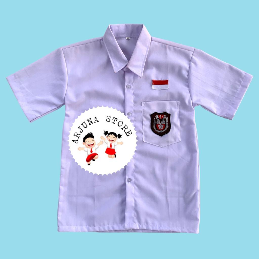 Baju SD Putih Lengan Pendek Logo Bendera Seragam Sekolah