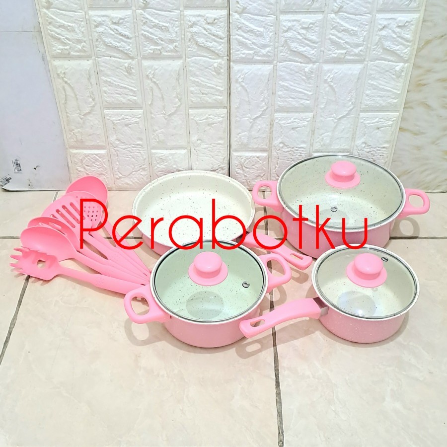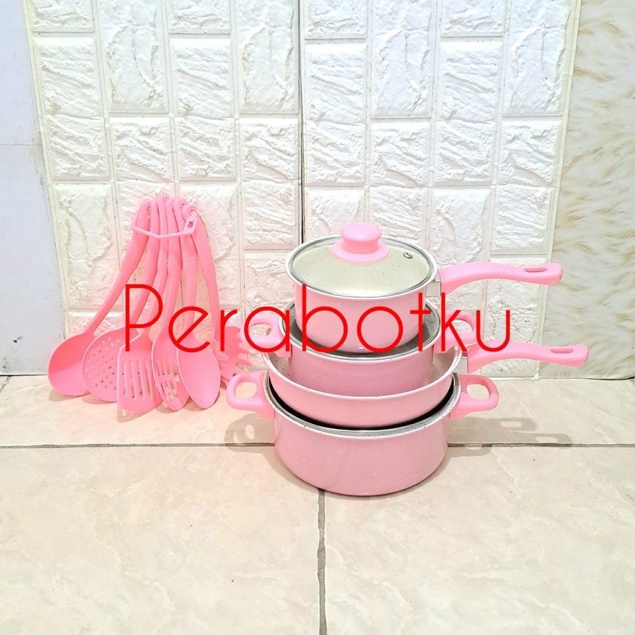 Panci Set 13 pcs Pink SG / Cookware Alat Masak Set Sodet Spatula Sutil Lengkap